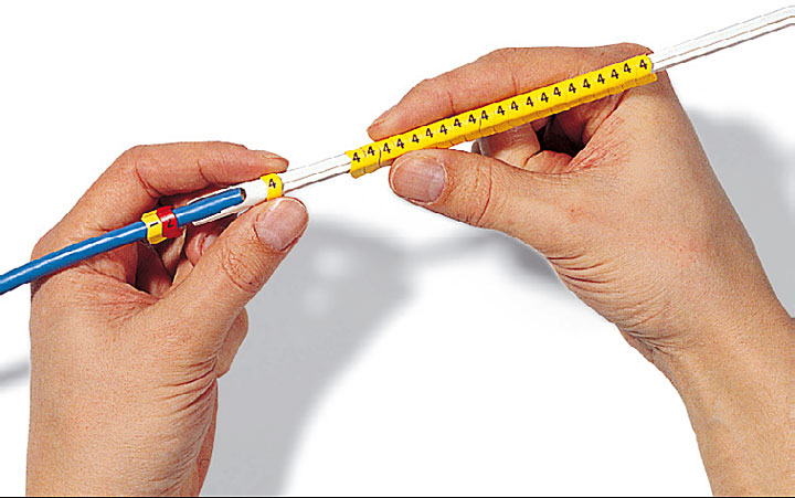 Za pomocą oznaczników opisane powinny być nie tylko przewody, ale również wszystkie elementy szaf sterowniczych, jak złączki, przekaźniki, styczniki, wiązki kablowe czy tabliczki znamionowe.Przed podłączeniem przewodów stosuje się natomiast inne oznaczniki niż po zakończeniu instalacji. Powszechnie używane oznaczniki przewlekane cechują się zamkniętym kształtem. Specjalnie ukształtowany profil wewnętrzny pozwala na zastosowanie jednego rozmiaru oznaczników do kabli o różnej średnicy. Budowa w formie strzałki ma natomiast zapobiegać przekręcaniu się oznaczników względem siebie, co jest szczególnie ważne w przypadku oznaczeń wieloznakowych, złożonych z kilku elementów. Dzięki zastosowaniu elastycznego materiału oznaczniki przylegają do przewodów. Aplikację elementów ułatwiają specjalne narzędzia, w które wprowadza się przewód, a następnie zsuwa się na niego przygotowane oznaczniki.